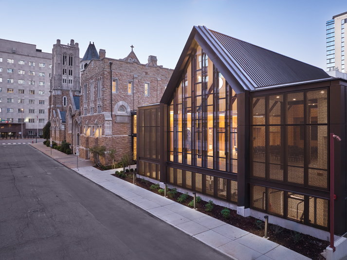 A new addition to the historic building located on Broadway in Nashville, Tennessee, with renovations to the existing structure. The new, two-story, 19,000-square-foot addition includes a fellowship hall, kitchen, classrooms, offices, and a garden terrace.