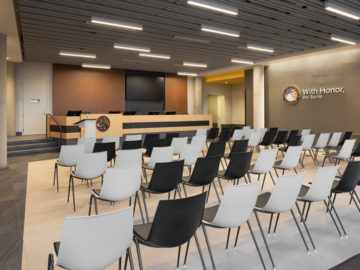 A new, two-story building of approximately 32,000 square feet.  The proposed structure is conventional steel framed.  The building includes a sally port, kennels, generator and transformer yards, court, administration and dispatch areas, records, and evidence storage.  An annex equipment storage building is part of the project, along with a covered-parking structure.